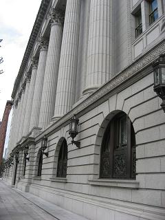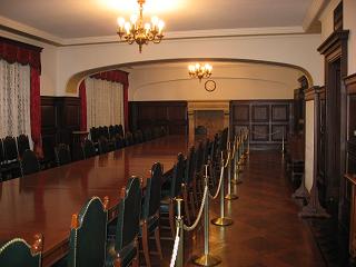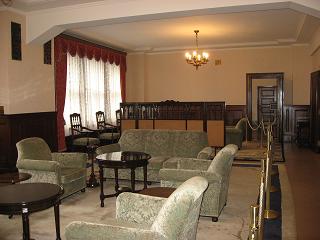 明治9年に竣工したコリント式円柱が印象的な重要文化財で、土日は無料開放されていてラウンジや会議室、応接室などを見物した。 |