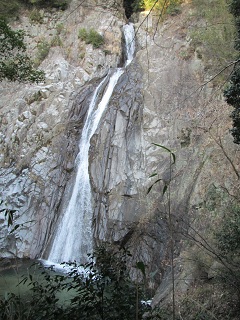 ◆メリケンパークからシティループバスを利用すると新神戸駅までほんの35分だ。 滝は新幹線の新神戸駅から北へ400mも行った山の中にあって、これ程大都会の近くにある滝(日本の滝百選)は他にはないだろう。 いさご橋を渡り、しばらく山道を登って行くと展望台に出た。 この滝は古くから歌の名所になっていた所で、途中あちこちに歌碑があって「滝の側に「浮世をは今日は明日かと待つ甲斐の涙の滝といつれ高けむ」と詠まれた在原行平の歌碑もある。少し行くと茶屋・おんたきがあった。 |
