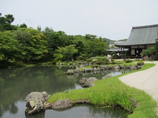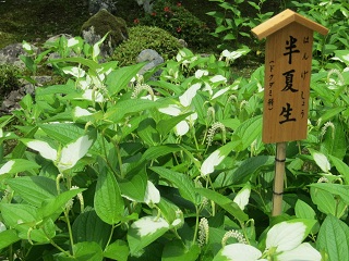 ◆終点で下車すると「天龍寺」。南門から入り正面に向かって進み、「法堂」など見物しながら「大方丈」の裏へ回ると、庭園で禅の境地を表したという夢窓国師作の見事な「曹源池庭園」が広がっていた。 庭園を抜けて百花宛を散策していると、半夏生の真っ盛りの季節で美しい。 さすが名勝地だけに参拝者や修学旅行の学生で大変な賑わいだった。嵯峨と云えば豆腐も有名で、愛宕山の帰りがけ清凉寺側の森嘉で嵯峨豆腐を購入したことがある。 店構えは普通の豆腐屋さんだったが、製法に特徴があるらしく、腰の強い美味い豆腐で行列が出来ていた。 |