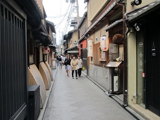 | ◆太秦、嵯峨野をうろついたところで、帰るにはまだ時間はタップリある。 天神川駅から地下鉄東西線に乗り継ぎ三条に出て、先斗町公園の先を歩いていると、偶然舞妓さんに出くわした。 通りの終点まで歩いていく途中、司馬さんも立寄った「ますだ」を見かけ、一度は楽しんでみたい有名店だが、かなり敷居は高そうな雰囲気だった。 見残した所は次の機会の楽しみにとっておくことにした。 |