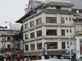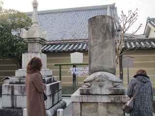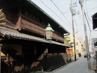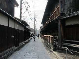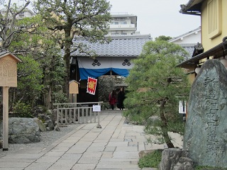 ◆ 梅小路公園で小休止して島原大門を抜けると、江戸の名残を残す「角屋」と今も営業している1668年創業の「輪違屋」がある。 輪違屋は遊女、大夫を擁する日本で唯一の茶屋で、玄関には観覧謝絶の木札がかかっていた。一見さんはお断りの世界だ。 幕末の角屋も西郷隆盛ら尊王派が密議を凝らした場所で、「久坂玄瑞の密議の角屋」と刻まれた石碑が立っており内部を見学したいと思ったがあいにく閉館中だった。 芹沢鴨の泥酔に乗じてひそかに誅殺しようと、新撰組幹部の酒宴が行われたのもこの角屋で、八木邸に戻ったところを近藤勇らに暗殺された。 |