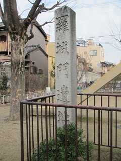 ◆司馬さんは「京都の寺院を歩くには、平安最古の遺構である東寺の境内を出発点とするのがふさわしく、古い形式の住宅建築である御影堂を見たのち他の場所へ移って行くのが京都への礼儀である」と書いている。 御影堂に向かうと『古寺巡礼京都』東寺、司馬遼太郎氏の文章より「東寺の御影堂の前で待ちましょう・・・」と書かれた立札が立っていた。 九条通りを西へ少し行くと、小さな児童公園に平安京の正門だった羅生門跡があったが、今では礎石もなく石碑があるばかりだ。 |