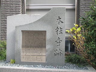 ◆ 壬生寺の境内のすみに近藤勇の胸像と遺髪塔があって、側に芹沢鴨の墓もある。 八木邸から東へ数分も行った先の光緣寺には山南敬助ら二十八名の新撰組隊士の墓があった。 次の目的地 聖徳太子ゆかりの西国十八番頂法寺(六角堂)へ向かう途中、油小路通り蛸薬師山田町の旧本能寺小学校付近で「此付近本能寺跡」の石碑を見つけた。 。 |