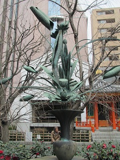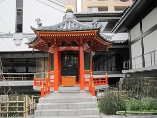 | 六角堂 | 池坊華道発祥の地碑 | 生け花のモニュメントと太子堂 |