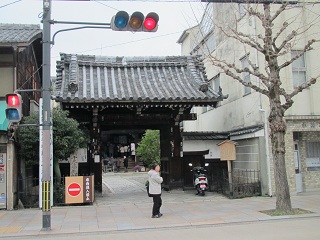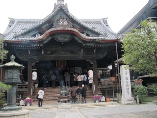 ◆ 六角堂は周囲をビルに囲まれたその名のとおり六角形の寺で、太子が沐浴したと伝えられる池跡のほとりに僧侶の住坊があったところから池坊と呼ばれ、池の坊華道発祥の地だ。 門を入った所に「へそ石」というものもある。六角通りを東に進み、御池通りを横ぎって市役所の横を行くと通称革堂と呼ばれる変わった名前の西国19番行願寺がある。 境内に入って行くとお遍路さん一行に出くわした。本堂に円山応挙が描いた幽霊の絵馬があるが公開日でなかった。 |