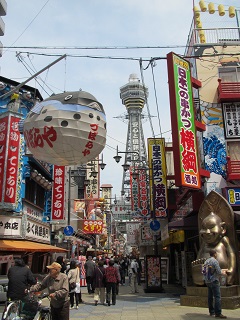 紅笠や紅手毬など珍しい桜を楽しんで難波のシンボル・通天閣へ向かった。