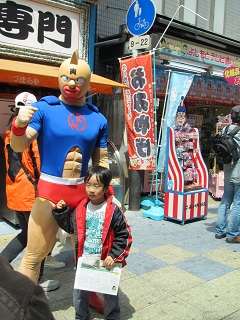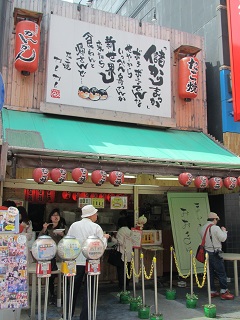 ◆ 通天閣南本通りをうろついていると、たこ焼き「かんかん」の店先には明石家さんま等芸能人の写真がズラリを掲げられていて、たこ焼きは300円とさすがに安くて美味い。