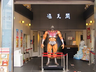 串カツ横綱の入口にはソースの二度漬け御免!!の文字が貼ってある。通天閣一帯には一杯飲み屋が目立ち、将棋名人・坂田三吉の将棋碑や地下には、通天閣劇場ENGEKIがある。