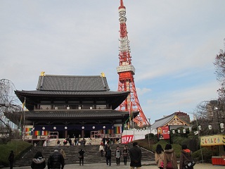 三解脱門をくぐり境内に入って行くと、墓所門は普段は閉じられており外からのお参りだった。増上寺大殿の裏手に東京タワーが大きく見える。二階には中華バイキングの太陽楼がある。展望台まで上がると、ここから眺める景色は素晴らしく、東京スカイツリーや六本木ヒルズなど大展望を楽しんで、来たついでに池波正太郎の小説にもたびたび登場する「愛宕神社」へ向かった。途中禅寺•金地院がある。