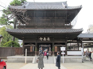 「高輪大木戸」の石垣が残る先の信号を渡ると、赤穂浪士が眠る「泉岳寺」である。山門をくぐり奥に入って行くと、吉良上野介の首を洗った井戸の先に四十七士の墓があった。
