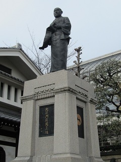 境内には大石内蔵助の像が連判状を持って東の空に向かって立っていた。 |
