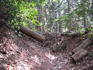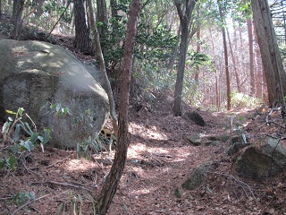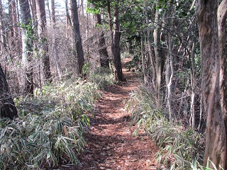 林道脇に駐車し準備して出発。沢にかかる丸太橋を渡り、しばらく斜面を登って行くのだが、ほんの20分程で鉄塔の前まで来ると、初めて北西方向に展望が開け、瑞浪、土岐市街を見渡せた。ジグザグの登山道の傾斜はかなりキツイが、尾根に出ると百曲りコースからの登山道が出てくる。