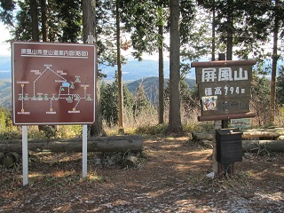 | 標高794mの屏風山は岐阜県瑞浪市と恵那市との境、屏風山系に位置し、南北に8座の700m級の峰々が並んでおり、標高は低いがいくつかのコースが選べ、静かな山歩きが楽しめる。山上には東濃地方の湿地のなかでも最大級の黒の田東湿地があって、春先にはノカンゾウ、夏にはサギソウやトキソウ等が見られる山でもある。 |