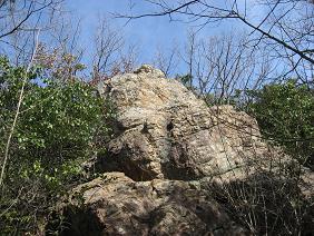 緩やかな尾根を進み、急登を登りきると「督ノ城跡」の標識のある大きな岩に着く。ここまで約1時間30分、このコース全体の半分以上歩いたことになる。ここからいくつかのヤセ尾根、急登をくりかえす...。
