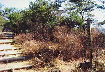 北に続く道を一旦下り、急な階段をジグザグに登って行く...。この登山道はいきなり高度を上げるので勾配がきついがアプローチは短いのでゆっくりと歩く。約45分でなだらかな丸みをおびた水晶山山頂に着いた。山頂のスペースは相当広く、4,5人の先客がくつろいでいる。