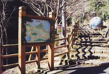この森にはぐるっと回るウォーキングコースが整備されていて、それぞれ「アルプスの小径」、「七滝の小径」と名付けられている。どのコースをとっても同じような距離、時間で山頂に着ける。