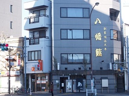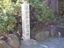 ◆大隈講堂から穴八幡宮に出て坂を登ると正面の八幡鮨の前で「高田馬場跡之碑」を見つけた。