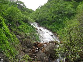 | 連続する滝の沢歩き | 振り返るとオホーツク海 |