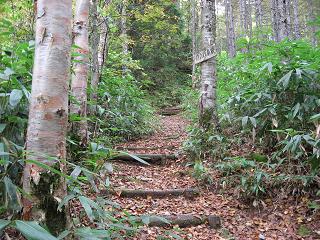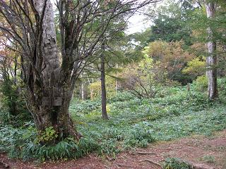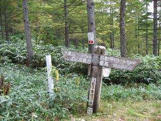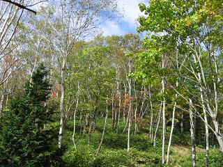 | 日影峠のシラカバ林 | 登山口の案内板 |