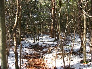 | ルートの紹介 ◆この10日ばかり連続してはっきりしない天気が続いていたが今日はめったにないほどの上天気で、手近な高社山に出かけた。国道19号線沿いの多治見市から旧248号線で高社神社へ向かう。 この神社の奥が登山口となっており、JR小泉駅を目標に西に進むと車道の奥に反射板の立つ高社山が見えてきて遠くからでも良く目立つ。寒波の影響で風はあまり強くないが、かなり冷え込んでいてフリースとジャンバーを用意し鳥居をくぐり参道をほんの十数分余りで尾根が出てくる。 御嶽山を眺めながら進むとすぐ分岐に出てこれを北回りに登っていくと池があった。階段を登ると高社神社で今年の無事を祈願し、池手前の案内板からショートカットして急坂を登りきると愛宕神社に来る。ここまでおよそ45分、平坦な尾根を登っていくと誰もいない開けた広い所に出た。 この山には中電の反射板が設置されていて雰囲気はあまり良くないが、南に多治見市街、その向こうに新雪のついた恵那山を眺めながら小休止。ガイドブックでは頂上からの展望はないが、せっかくここまで来たのだから山頂も見ておくことにした。山頂までは10分程の登りになる。木に登山者が残した木札が付けられていて明るいが展望は無い。 ここまで来るとようやく体も温まって来た。戻る途中右からの登山路を下り、砕石場にも寄り道して30分程で秋葉神社の小さな祠に出た。ヒノキの植林地の中をのんびり下り駐車場に戻ったのは11時だった。 |