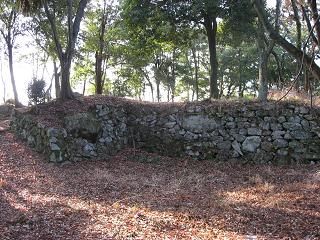 | 一の曲輪に残る石垣 | 三の曲輪から妻木町の町並み |