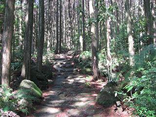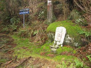 | ルートの紹介 ◆初めてバスツアーハイキングを利用して「熊野古道・八鬼山越えコース」に参加した。今日はY氏も一緒だ。名鉄バスセンターで待合わせ、三木里には10時10分に着いた。 熊野詣の習慣が流行になったのは中世になってからで京都から熊野まではかなり遠いが、司馬遼によれば「この旅行熱が病みつきになったなかには白河上皇の八回、後白河にいたっては三十三回というぐあいだった」とある。今日は伊勢参りを終った巡礼者が通った伊勢路コースを三木里から最初の目的地「名柄一里塚」に向かい、頂上迄2時間くらいかける。 この山の標高は627mと高いとは言えないが標高差は620mある。石畳の道には所々石仏が置かれている。途中から急な道になって一汗かくが、「江戸道」を1時間半も進んだところでようやく視界が開け広場に出た。もうだいぶ疲れた感じだから早速味噌汁を沸かし、ベーコンを焼いて定番のコンビニの握り飯を広げた。 デザートはリンゴ。そして食後はコーヒー。山の上で飲むコーヒータイムはゆったりとした気分になる。南に開けた向こうに熊野灘が見える。はるばる熊野古道を楽しみに出かけた甲斐があったというもので、あいにく薄曇の天気だったが見飽きるまで眺めていた。八鬼山の標高はここより低いが、せっかくここまで来たのだから見ておくことにした。茶屋跡の脇に「ゴトゴト石」と呼ばれる大きな岩があった。 山頂を過ぎたら八鬼山峠最大の難所「七曲り」が出てくる。下りだから気楽なはずだったが苔で滑りやすく慎重に下ったので時間をだいぶ損をした。行き倒れ巡礼供養碑などを見ながら下って行くと林道出合に出て駐車場に戻ったのは15時だった。バスの出発にはまだ時間が大分あるので「熊野古道センター」を見物して帰路についた。 |