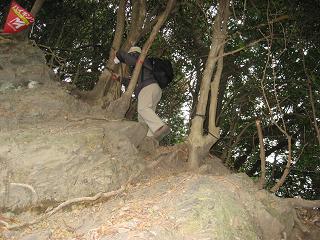 | 急斜面をゆく | 尾根まで10分 |
