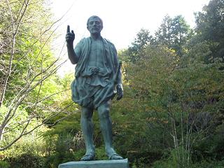 | ルートの紹介 ◆10月の第2週目は愛知県西三河の六所山と炮烙山に登った。ここは懐かしい所で六所山のふもとから少し登って、司馬さんも歩いた徳川家の先祖・徳阿弥の菩提寺に行った記憶がある。高月院の白い塀と山門はいやにはっきり憶えている。 矢作川の支流・巴川付近まで来ると松平橋、松平高校など徳川家に縁のある名前が目に入ってきていよいよ松平郷に入ってきた感じがする。大内町の集落に入り、看板を目標に豊田総合野外センターに向かう。「きつねコース」の案内板から南に向かって登山道が続いている。これを登って行って山頂から北西に50mも行くと台地状に開けた所に出た。 見晴台となっているが反射板が設置されていて雰囲気はあまり良くなく、スペースも狭いがガスバーナーを用意しコーヒータイムにした。。山頂を過ぎたら神社があった。これが六所神社奥宮だ。「うさぎコース」を下る道で台風18号で倒れたデカイ倒木をくぐり抜けて進んでいくと、沢沿い近くの斜面に休憩出来る場所を見つけたが、次は隣の炮烙山へ移ることにした。 山頂直下の「いこいの広場」まで車が入り、頂上まで20分程の登りで済んでしまう。西側に六所山が姿を見せ、ここからの眺めも見応えがある。山から下りて来て松平親氏公の像と久しぶりに対面し、せっかくここまで来たのだから高月院も見ておくことにした。 境内に人気はなく、おかげでゆっくり見物できてケッコウな話だ。時計も12時を廻り急に腹が減ってきて、今日の昼食はいつものコンビニで買った間に合せのオニギリではなく、松平郷のはずれの茶屋で麦トロを注文しようと決めた。素朴な食事でおかずにフキを煮たものがついていた。 |
