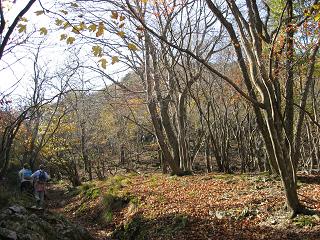 | ルートの紹介 ◆11月の山歩きはバスツアーを利用して鈴鹿山脈北端の藤原岳登山コースに参加した。問題は天候だが出発当日はめったにないくらいの上天気でこれならいい山旅になるとホットした。およそ10キロ、6時間かかるコースは難易度☆☆☆の健脚向きで、久しぶりにハードな山登りになりそうだ。 東名阪自動車道・桑名ICから30分ばかり西へ行った先が登山口となっている。見頃の紅葉はさすがで大貝戸道の案内板から登って行くとたいした傾斜ではないが途中から結構キツイ登りもあって,休み休みかなりの時間と体力をつかってようやく藤原山荘にやって来た。 いままで尾根にかくれて見えなかった山頂部が見え始め、山荘から南に向かって登山道が続いている。ここまで来れば目前で、次々と下山して来る先客達とすれちがいながら15分ばかり登るとそこが頂上だった。展望台となっていて予想通り見晴は良い。 11月に入ってドット寒くなって山上はかなり冷えるだろうとジャケットを用意したが、朝から平年並みの気温に戻りおかげで一汗かいてしまった。腹ごしらえして元気が出たところで、帰りがけにここより高い「天狗岩」まで行ってみようと思ったが、その分だけ帰りの行程を考えるともう時間切れで下山にかかる。 この日は高速道路の値下げで渋滞が予想されたが、予定通りに到着しヤレヤレだ。紅葉の季節は短いから寝る間も惜しんで動き回り、来週は伊吹山北尾根・国見岳へ行ってくる。 |