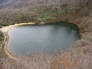| ルートの紹介 ◆11月中旬、越美山地の三周ヶ岳へ出かけた。最初から頂上まで行くつもりはなく、池ノ又谷沿いに山腹の急斜面を越えてブナの林に入り、標高1099mの山の中にある夜叉ヶ池がどんな所か気になって入ってみた。 渓谷沿いに1時間ばかり登って行って幽玄ノ滝を見上げながら小休止して、夜叉壁から稜線鞍部までの最後の約50mの登りはロープを利用して直登し、乗り越えて先を見下ろすとそこが夜叉ヶ池だった。周囲230m、林に囲まれしっとりとした感じのいい池で、雨乞いの龍神伝説が残っていることで知られている。 三周ヶ岳は人気が高く、ここからほとんど全部の登山者と別れると静かな雰囲気を味わえる。10分ほど斜面を登って夜叉ヶ丸まで行ってみた。途中上から見下ろすと池のブルーがよくわかる。 数十万年前の地滑りの跡の凹に出来た天然の池は、水系がつながっていないから魚はいなく、たまり水のせいかあまり冷たくない。絶滅危惧種の指定されているヤシャゲンゴロウの生息地で、イモリもいるらしいが繁殖のシーズンではなく池の中をのぞいてもこの時期出会えなかった。 昔からイモリの黒焼きはホレ薬になり、これをふりかけるとてきめんに効くそうだが…。池の向こう側に平地があるので行ってみようと思ったが立入禁止区域で引き返した。山上は風が冷たくかなり冷えたから、帰りがけに「いび川温泉 藤橋の湯」に寄り道して久しぶりに長湯をしてしまった。 |