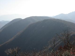 | ルートの紹介 ◆今年の秋は紅葉の山を十分楽しんだところで、三重県の鈴鹿、尾鷲地方等まだ行ったことがない山が気になっていたが、11月の第4週目は伊吹山北尾根・国見岳に目標をおいた。 岐阜市内に入ると朝の渋滞が始まっていて平日の県庁前を待合わせ場所に選んだのは失敗だったが…。国道21号線沿いの大垣市から「春日局」の出生地と伝えられている旧春日村に向かい、国見峠まで乗りつける。峠に着いたのは10時半を少し廻った頃で、幸い寒くもないし風もたいして強くなかった。 標高は840m、1時間もかければ山頂に着くだろう。電波塔跡地まで来ると周囲は広々とした銀助平と呼ばれる頂上台地で、揖斐の山々が連なり絶景だった。国見岳山頂から南に続く大禿山、御座峰を越えて伊吹山まで北尾根ルートが通じている。 高い所からの見下ろせは気分が良く、伊吹山にかかっている雲は消えそうもないが東側に大きく見えるのは池田山で、そうなるとその左は貝月山とブンゲンらしい。 近くで黒っぽいクマのウンコらしいものに出会うが湯気は立っていないから古い物らしく、登山口には「熊出没注意」の看板も立っていてクマよけの鈴は必携だった。周囲にはブナ林もあってこのブナの実は食べるとクルミのような濃い味でうまいらしい。いつか新緑の頃、この北尾根コースを伊吹山まで歩いてみたい。今日はどこへも寄らず、土産も買わず帰った。 |