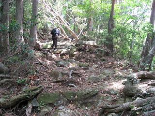 | ルートの紹介 ◆東海の百山を目標のひとつにして、ヒマさえあれば地図を広げ登山口を探して現在63座。5月下旬、東海道線、飯田線と乗り継いで本長篠駅から鳳来寺山に向かった。バス停から門谷の集落を20分ばかり行った先の表参道から、いきなり1425段もあるという長い石段を登っていくのだが、上がるにつれて急になってきた気がする。 周囲はうっそうとした杉木立に囲まれているが、日中の暑さは相当なもので登りは一汗かいてしまった。休み休み進むからかなりの時間を損したが、登りきった弘法大師の像が立つ平坦な所の奥が本殿の境内。その脇が登山口となっている。急な坂を上がり尾根に出ると南西方向に展望が開け、奥の院で休憩をとって食料はオニギリと漬物、デザートはバナナ。 しばらく休んでいたら下から数名のグループが上がってきた。ここからほんの10分あまりで直ぐ山頂になる。 鳳来寺山の標高は684mと低いが、この山を有名にしているのは「仏法僧」と鳴くコノハズクが棲息していることで知られ、一度行ってみなくてはならない気持になって期待して来たが、今ではコノハズクの鳴き声を聞くことは滅多にないらしい。 この寺には重要文化財の仁王門や徳川家光が建てた東照宮があって見事な彫刻が施されている。時間は12時を少し廻った頃で、電車の出発時間が気になるところだが、下山口の湯谷温泉駅までは1時間半もかければ着いてしまう。時間はタップリあるからゆっくり行き着けば良い。 東照宮に参拝し、行者越の難所をかけ下りて行くとちょっとした岩場もかなりあった。湯谷峠まで来ると、石柱の古い道標が立っている。寛政年間に建てられものらしく「左ゆや村…」とあって我々も左の道を湯谷温泉駅へ下りる。公園の広場で利修仙人像に出会い、駅で一休みしていると15時44分発の豊橋行きの電車がやって来た。オレンジジュースの疲労回復効果はたしかにあった。 |