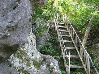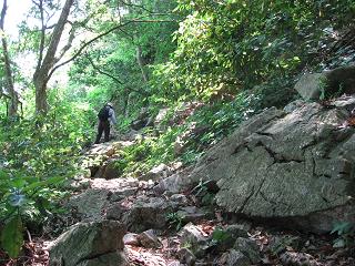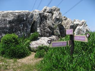 | ルートの紹介 ◆地図をジット見て行きたくなったところで出掛けるという山行も楽しいもので、6月の第1週目は三河地方の石巻山へ出掛けた。JR豊橋駅で市電に乗換え、終点の赤岩口で下車。電停から車道を歩いて行くのはただ長くて登山口までケッコウ時間がかかったが、麓から見る石巻山は形の良いピラミッド形で見ごたえがある。 ようやく車道を横切った先に登山道の指導標があった。「山頂まで2.2km 50分」とある。石巻神社の石段を上がり、蛇穴やダイダラボッチの足跡など石灰岩の急な坂を登って行くと真っすぐ平坦な尾根が出てきた。やがて岩場にかけられた階段を登りきるとすぐ山頂になる。 ハラが減ってもまだ山へ行こうとする気になる人が本当の山好きだろうが、ひと休みしていると急に腹が減ってきた。石巻山の山頂部は360度の展望が広がり見晴は良い。時間は少し早いが景色を楽しみながら昼食はコンビニで買ったオニギリだ。 石巻神社に参拝し、広い林道を下りて行って豊橋自然歩道の標識から山側に入る。大知波峠まで来ると周囲は台地上の開けた明るい所で、ここから浜名湖一帯の眺めは素晴らしい。しばらく休憩をとって水分を補給、次の目的地・富士見岩に向かうとゆるやかな稜線となって、登山道は坊ヶ峰方面につながっている。 時刻は13時を回りバスの出発時間が気になるところで、下りはやや急になるが林の中を下りて行ってそろそろこの辺りだという頃に蛇穴の分岐が出てくるとバス停は近い。もうあまり時間はないが14時22分発豊橋行きに間にあった。 |