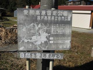 8時に出発し。恵那市内から稲武町に向かい、国道153号線沿いの段戸山牧場の看板を目標に左折し、駒ヶ原の集落に入ると道端に「段戸山高原自然公園」と書かれた古ぼけた案内板が立っている。林道を進むと、駒ヶ原山荘手前の黒田川にかかる橋のたもとに登山口の指導標があった。ここから頂上まで標高差はわずか300m,1時間もかければ着いてしまう。