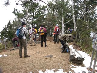 天気が良ければ高見山地から伊勢湾まで見渡せるが、あいにく薄曇で小雪混じりの風が冷たく十数分居ただけで早々に切り上げた。矢頭峠への下山道は急だが50分もかければ着いてしまう。慎重に下り次の伊勢山上へ向った。 |