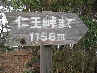 | 仁王峠(矢頭峠)まで1158m |