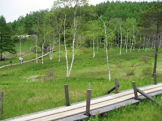 「散策ガイドBOOK」を見ると仏平峠を越えて反対側の大阿原湿原に下ると原生林の雰囲気を味わえる。行ってみたい気はもちろんあるが、もう時間切れで高層湿原の花と360度の展望を十分楽しんだところで帰りがけに「すずらんの碑」に寄り道してゴンドラ駅へ戻った。一時ゴンドラが止まるアクシデントに出くわしたが、バスの出発時間に間に合ってヤレヤレ。万歩計を見ると10075歩、意外と少なかった。 |