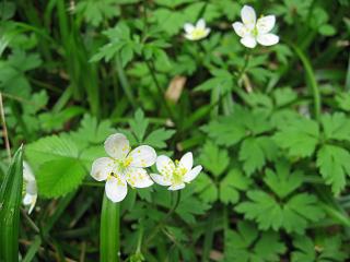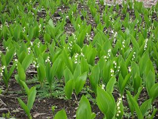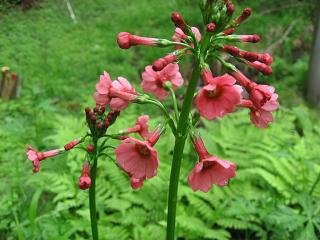 15分も行った先が入笠湿原。カラマツの森に囲まれた木道の周囲一面はスズランの群生地で、何十年か前になるが園芸店で平地でも栽培しやすく安かったから1鉢買う気になったが、その後ツボミも出来ずに終ってしまったことがあった。やはり厳しい自然の中で咲いているのが一番だろう。木道を横切って山彦荘まで来ると、濃い赤紫色で大きく花もハデなクリンソウを見つけた。ニリンソウも沢山咲いている。