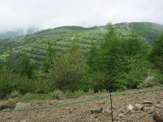 御所平の手前から林道に入り首切登山口に向う途中に八ヶ岳のビューポイントがあったが、梅雨のまっただ中