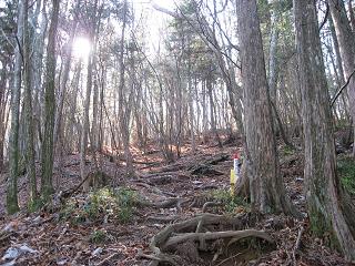 今年は寒波が遅く冷気もそれほど気にならなかったが、今朝は9度とかなり冷えこみ念のためフリースを用意してしばらく歩くと「第一のコブ」と呼ばれるベンチが置かれている所に出た。第一展望台、第二展望台に寄り道しながら標高1160mの「ダナのシャクナゲ群生地」の看板を過ぎると頂上は近い。 |