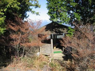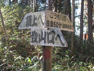 ◆1時間は歩いたろうか?コース全体の約半分を歩いたことになる。そろそろこの辺りだという頃、突然開けた所に出た。三角点は大岩の上にあった。山頂のすぐ下のあずまやで、地元の先客数名がくつろいでいる。休憩するにはピッタリの場所で、餅入りの甘いしるこを二杯もご馳走になった。周囲を見ると福岡小学校六年生が残した卒業記念登山のプレートがズラリを掛けられていた。