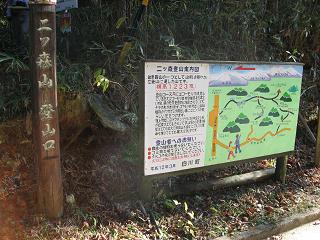 中央自動車道・土岐ICで待合わせ、中津川ICから国道257号線沿いの市野を目標に左折し切越峠へ向かった。1時間半で登山口に着いた。二ツ森山の標高は1223m、ここから頂上まで累積標高差500mも登ると着いてしまう。ゆっくり歩いても2時間はかからない。紅葉の真っ盛りの季節だが、駐車場車は1台もなくおかげで静かな山歩きを味わえる。