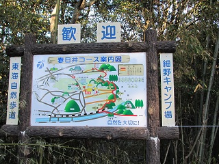 ◆開けた向こうに見えるのは尾張三山、そして入鹿池だ。コース全体としてはあまり眺望が無い登山道だが、林の中を天気の良い日に落葉のカサコソたてる音を聞いて歩くのもいいもので、途中植物園や甘原からのコースが出てくる。