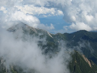 | 焼岳と乗鞍岳 | 飛騨乗越から槍ヶ岳 | ||||