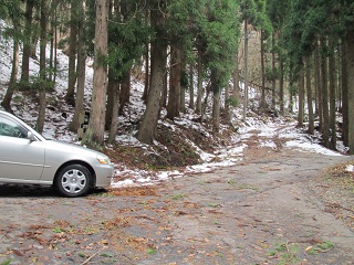 | ルートの紹介 ◆相変わらずヒマさえあれば地図を広げて行きたくなったところで出かけるというのも楽しいもので、郡上市高鷲町にある見当山へ出かけた。何年か前になるがデイリー郡上CCの林道脇が登山口となっているのだが、探してみてもどこにあるか分からなくあきらめて引き返したことがある。 どんな所か気になっていて紅葉の季節をねらってK氏を誘い国道156号線をひるがの高原へ向かった。今回は二万5000図を用意しており、やまびこロードを進み郡上高原CCの看板を目標に左折し、クラブ前を通り過ぎて右手の林道へ入って行くと「長良川源流の地」と書かれた案内板がある。 道の先がどうなっているか分からないが、新雪が着いた林の中を行ける所まで行ってみようと車を置いて、しばらく緩やかな道を歩いて行って林道終点から山道へ入った。 |