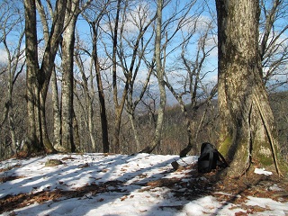 | ピーク直下 | 林道終点 | ピークのブナ林 | |||