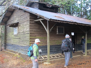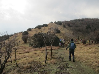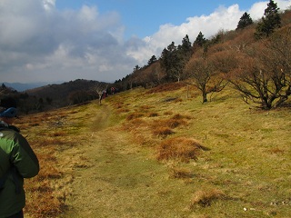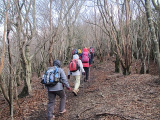 | ◆ 1時間半も登って行くと不動滝からのコースが出てくる。風が冷たく避難小屋で昼食を摂って小休止。腹ごしらえをして明るい尾根を25分も登りをやると頂上に来た。三峰山の山頂部はチョットした広場で、眼下に神末集落その左に倶留尊山が見える。朝から雲が多かったがこれだけ見えれば上出来である。 山上はかなり冷えるからウエアーを着込んだ。一等三角点を確認し、この後の「八丁平」は時間もあまり無いだろうから素通りして下山にかかる。 三畝峠から新道峠を廻りこんでアップダウンを繰り返しながら進み、登山口に出るまで少し手間どったが、三峰山の北にある「曽爾高原温泉 お亀の湯」は11月に倶留尊山へ登った帰りにあった温泉で、効能を見ると筋肉痛、関節痛などとあるから具合が良い。いつか樹氷が見られる頃この道を歩いてみたい。 |