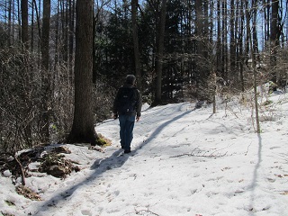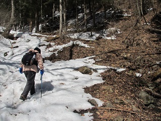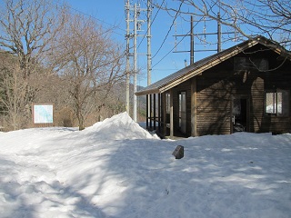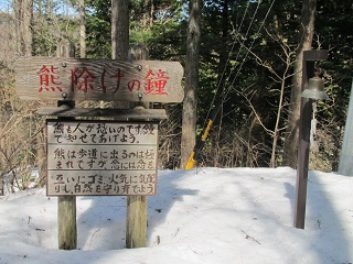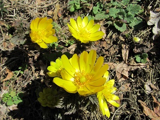 帰りがけに熊除けの鐘と書かれた看板を見かけた。この時期クマは冬眠の最中のはずだが、念の為鈴を鳴らしながら慎重に下った。芭蕉も峠まで来て偶然栃の実を拾ったのだろうか。「木曽の栃うき世の人の土産かな」と掘られた句碑もあった。フクジュソウの花に出合ながら藪原駅まで下りてきたら中津川行の電車に間に合ってヤレヤレ。 |