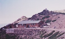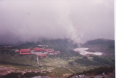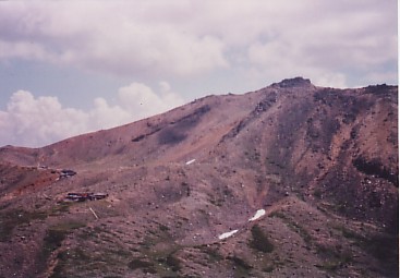 「こんにちはー」と声を掛ながら通り抜けていった。やがて溶岩の道となり登山道の左右にはコマクサが沢山生えている。カメラのシャッターをきると山頂に向かった。登山道の先に五ノ池小屋が見え始めようやく昼食になった。