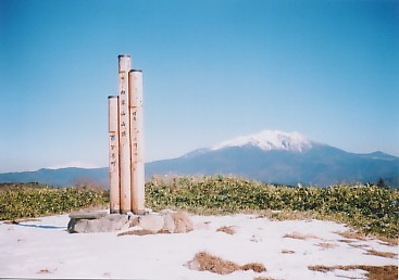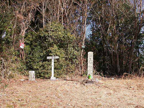 やがて尾根に出ると視界が開け眼下に山麓の集落が見えてきた。ここまでおよそ2時間、あと30分も歩けば着く。休憩をとりながら山頂に向かった。登山道の先に「三つ岩」が見えてくると山頂は目前。
